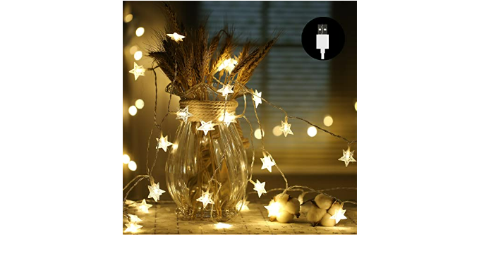 ⭐10FT 20LED Star String Lights: 10 feet led string lights with 20 cute little stars. Each star has a size of 1.3 inches, which is neither too big nor too small. Fun star-shaped pixie lights that made of crystal PVC, strong and durable, presents a soft warm light. The cord is also clear white, which complements the stars. There is 6 inches distance between every LED star.