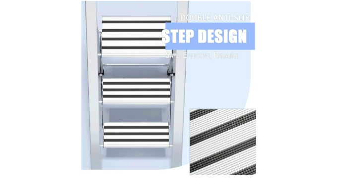 Wide step stool, platform pedal size is 12.2*9.05 inches, pedal size is 12.2*5.52 inches, wide metal step stool makes your landing comfortable enough
