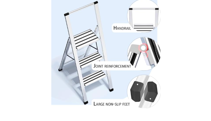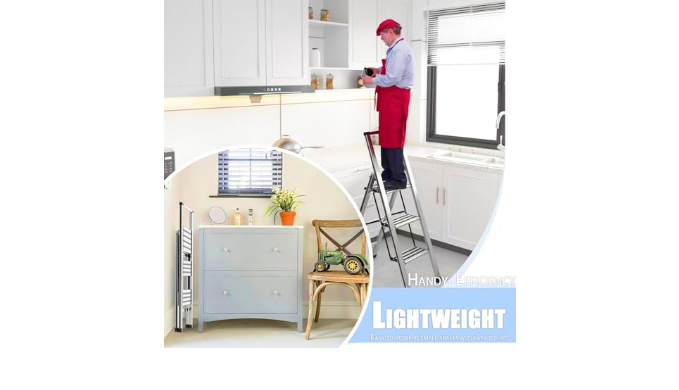 Lightweight portable folding step stool, all aluminum step ladder weighs only 15lbs, allowing you to use it easily, 2mm metal thickness is thicker, rated to hold 300lbs, ASNI tested to 750lbs without any deformation, which means this ladder is very strong and durable
