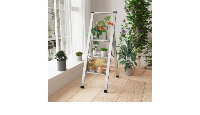 All aluminum ladder, environmentally friendly metal, wear-resistant, corrosion-resistant, rust-resistant, high and low temperature-resistant, anti-aging, not easy to deform, can be stored outdoors, far more durable than an iron ladder or plastic pedals ladder
