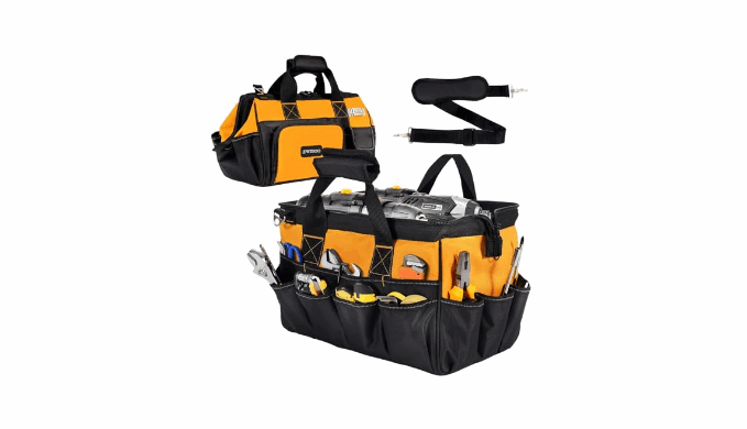 【16” Extra Large Capacity with 19 Organized Pockets】Crafted from ultra-thick 600D Oxford fabric, this heavy-duty tool bag boasts extra durability for daily work. Its 19 dedicated organizer pockets are designed to keep your tools neat: from hammers, drills, wrenches, and chainsaws to screwdrivers, impact drills, tape measures, pliers, batteries, and cordless grinders—even large tools stay organized and easy to find.