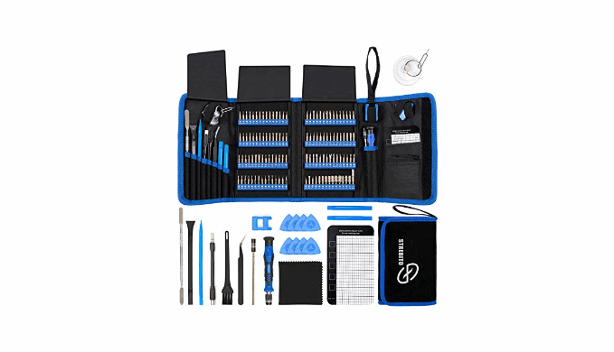 【Wide Application】This precision screwdriver set has 120 bits, complete with every driver bit you’ll need to tackle any repair or DIY project. In addition, this repair kit has 22 practical accessories, such as magnetizer, magnetic mat, ESD tweezers, suction cup, spudger, cleaning brush, etc. Whether you\'re a professional or a amateur, this toolkit has what you need to repair all cell phone, computer, laptops, SSD, iPad, game consoles, tablets, glasses, HVAC, sewing machine, etc