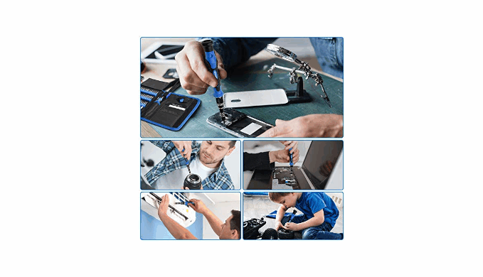 【Magnetic Design】This professional tool set has 2 magnetic tools, help to save your energy and time. The 5.7*3.3\" magnetic project mat can keep all tiny screws and parts organized, prevent from losing and messing up, make your repair work more efficient. Magnetizer demagnetizer tool helps strengthen the magnetism of the screwdriver tips to grab screws, or weaken it to avoid damage to your sensitive electronics