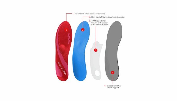 High-quality materials: Made of high-quality and durable EVA foam substrate, which can provide better cushioning effect and all-day comfort. It can absorb vibration and reduce foot pressure, reduce foot pain, and strengthened arch support can increase support force and disperse pressure to minimize the pressure on your feet. The top layer uses non-slip moisture wicking technology to help reduce heat and friction during strenuous exercise, keeping your feet cool and dry.
