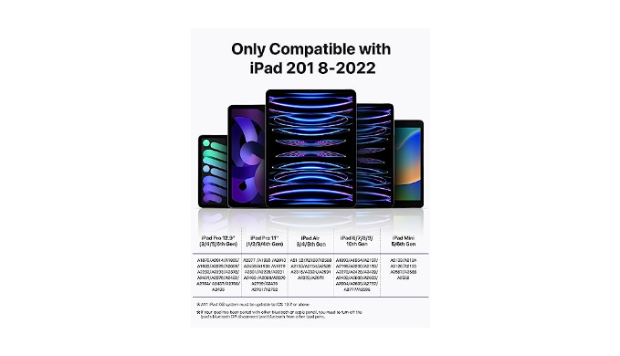 【Compatible with iPad & iPad Pro 2018 -2022】Stylus pen for iPad compatible models: Pad 10th/9th/8th/7th/6th Gen, Pad Pro 11\", Pad Pro 12\" 6th/5th/4th/3rd Gen, Pad Mini 6th/5th Gen, Pad Air 5th/4th/3rd Gen. *Please confirm your model before placing order,Please see pictures for details.