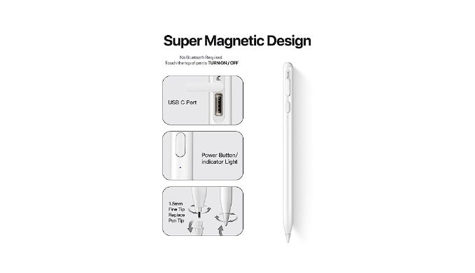 【Palm Rejection & Magnetic Attraction】No need to wear anti-friction gloves as you can rest your hand on the screen without worrying about accidental touches. The upgraded built-in magnet in the pencil for Pad offers stronger attraction than the original Pencil and firmly attaches to the side of Pad,This enables easy portability and prevents the stylus from slipping or getting lost.