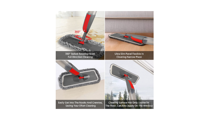 2th Generation UPGRADE Spray Mop – Extra thicker mop replacement pads is the one of the core improvement of this mop, more absorbent, won’t wear out after 100+ time uses. Enhanced sturdy trigger made from more durable material, will not broke easily. Fully sealed bottle helps you get away from leaking problem. Wet & Dry Spray Mop – We are offering two different kind of Mop pads to achieve wet and dry cleaning in one mop, it’s like buy one get two. We’ve researched that chenille pads is perfect for dry cleaning or scrubbing, for its’ higher water absorption. Top grade microfiber mop pads perfect for wet cleaning, efficient in tackling any hard-clean job. SUGARDAY Microfiber Spray Mops for Floor Cleaning, Wet Dry Dust Hardwood Kitchen Floor Mop With 410ML Refillable Bottle 360°Rotatable Mop For Laminate Wood Tiles Include 3 Reusable Pads and 1 Scrubber Suitable for cleaning any floor surface as well as window, walls etc.