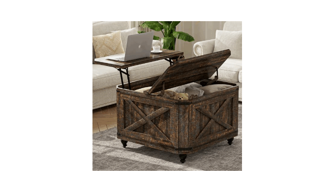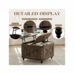 Lift Up Coffee Table: The lift top coffee table desktop is divided into two parts, half of which is a metal lift mechanism device that can make the desktop lift smoothly; the other half of the desktop is installed with high-quality hinge device, which can ensure that the desktop can be opened and closed stably, preventing fingers from being pinched, and guaranteeing the safety of your family