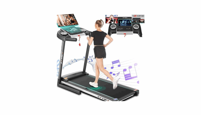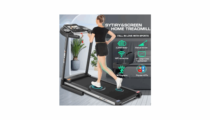 【Treadmills for Home with Touchscreen&WiFi Connection】 SYTIRY treadmill for home comes with an immersive 10\" HD tv touchscreen that can connect to the internet and play media.Folding treadmill also offers a range of scenarios that simulate outdoor running and provides detailed stats and tracking. Connect to the internet and stream videos and music directly to the large screen, and enjoy playback through the built-in speaker system.