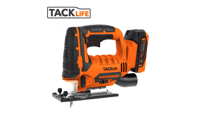 Experience the ultimate cutting freedom with the TACKLIFE® Cordless Jigsaw with Battery & Charger, 20V, 2.0Ah, DJS20A. Its convenient cordless design allows you to move effortlessly around your workspace. Enjoy precise control with an adjustable motor speed range from 0 to 2700 SPM, perfect for various cutting tasks. The kit includes 6 high-quality blades, ensuring versatility for different materials. Achieve bevel cuts with ease, thanks to the 0-45 degree bevel cutting capability. Enhance efficiency with 4 orbital action settings, tailoring the jigsaw to your needs. Illuminate your work area with the built-in LED light for improved visibility. The 45-degree aluminum plate offers stability and accuracy during cutting. The package also includes a long-lasting battery, charger, and a nylon fabric storage and carry bag for added convenience. Upgrade your cutting experience with this feature-packed cordless jigsaw.