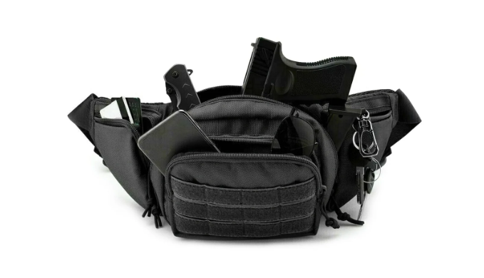 Crafted from premium oxford fabric, this concealed carry bag is tear and water resistant for outdoor excursions like walking, jogging, camping, hunting, and fishing as well as everyday EDC carry uses. Include 5 large capacity zippered pockets, keep your essential gadgets and devices organized on the go! Quick release buckle allows for rapid and easy access to the bag\'s contents. Modular Lightweight Load-carrying Equipment pouch enables you to hang your gadgets. Lightweight yet durable with an adjustable waist strap, an ideal companion for travelling.