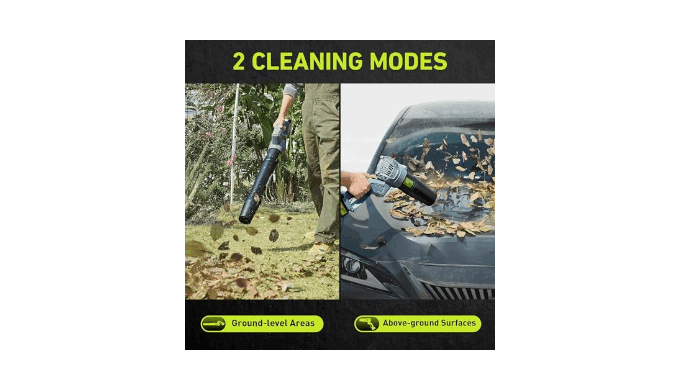 4 Adjustable Configurations for Maximum Flexibility: Featuring an extension tube and two work modes, the cordless leaf blower offers four versatile modes to adapt to different cleaning needs. Whether you\'re tackling above-ground areas or ground-level surfaces, the adjustable length and rotating airflow direction make it easier to reach and clean with minimal effort