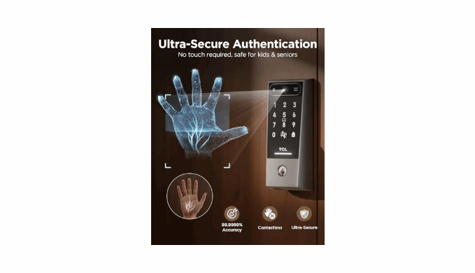 AI Palm Vein Recognition Smart Lock : Experience secure, hygienic, and ultra-fast unlocking with TCL Smart Lock D2 Pro, featuring advanced AI-powered palm vein scanning technology, a highly reliable biometric alternative to fingerprint locks and traditional key locks. Perfect for keyless entry and touchless access in modern smart homes