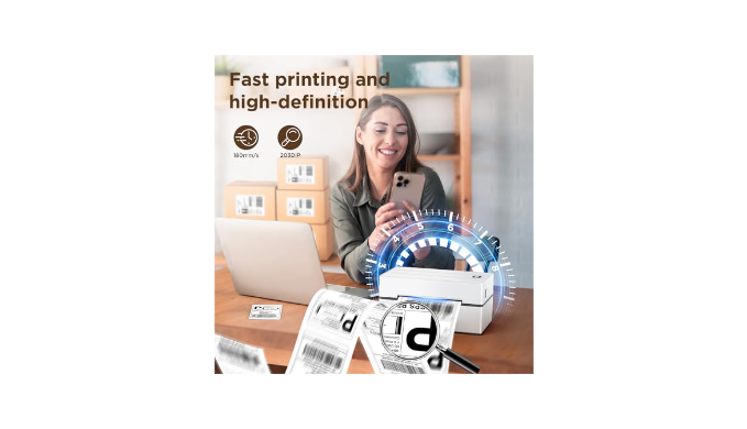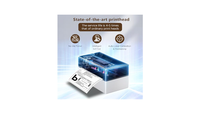 High-tech, high-speed label printer: Utilizing Japan\\\'s cutting-edge thermal printhead technology, this printer eliminates the need for messy ink or toner, ensuring effortless operation. With 203 DPI resolution, it can decipher barcodes easily, accurately, and quickly. Enjoy lightning-fast print speeds of up to 180mm/s, streamlining your workflow and saving you valuable time