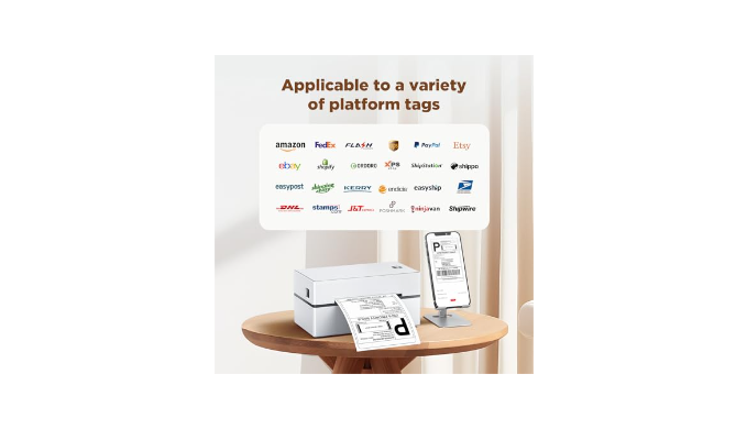 Multi-Platform Compatibility: Seamlessly integrates with leading shipping platforms including Amazon, eBay, Etsy, Shopify, UPS, USPS, and more. Ideal for a wide range of thermal labels, from 1.57 inches to 4.3 inches in width, including packaging labels, barcode labels, DIY labels, nutrition labels, and more