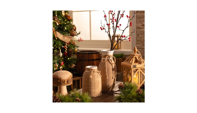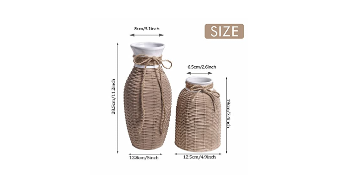 【Exquisite Craftsmanship】Crafted from quality ceramic and with the woven effect , this durable, high-quality, trend-lasting rustic vases set will keep your décor look fresh and up-to-date year after year.