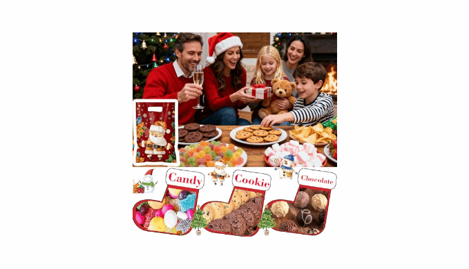 Durable & Reusable Christmas Treat Bags: Crafted from high-quality, food-safe plastic, these Christmas gift bags are strong, break-resistant, and built to last. They are the ideal Christmas treat bags for securely holding cookies, candies, and small gifts, and can be reused year after year.