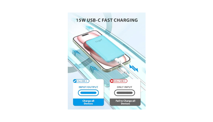 Universal compatibility:There are 2 cables and an USB C in/out port built-in the battery charger, containing multiple interface types. It is widely compatible with iPhone16/15/14/13/16Pro/15Pro/14Pro/16Pro Max/15Pro Max, etc, and most Android phones