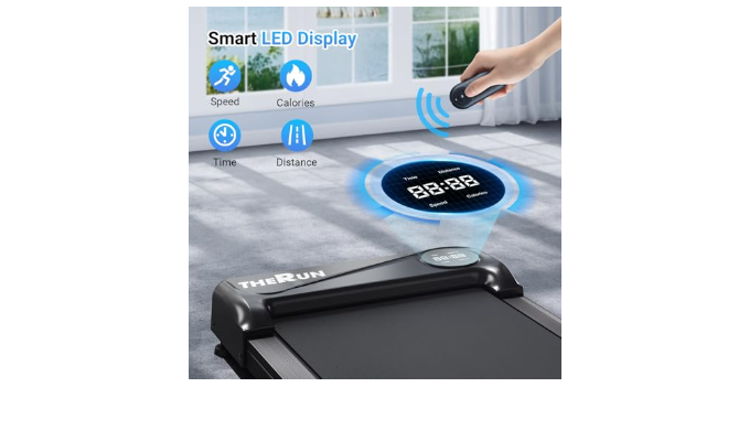 Multi Function Display and Remote Control: The LED display clearly shows time, calories, steps, speed, and distance, grasps your exercise status in time, and makes your exercise data clear at a glance. Additionally, the speed can be conveniently adjusted using the remote control, adding to the overall convenience and safety of the treadmill