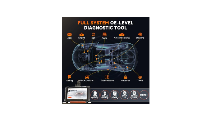 Full System OE-Level Diagnostic Tool:The THINKCAR TK672 is a factory-level scanner offering comprehensive diagnostics for all car systems, including ECM, ABS, airbags, SAS, EVAP, TPMS, BMS, and EPB. This versatile tool can read/clear codes, display live data in multiple formats, and supports Auto-VIN for one-click car info identification. With the TK672, you can easily pinpoint vehicle issues, generate detailed Wi-Fi reports, and ensure smooth, safe operation. Ideal for professional mechanics and car enthusiasts, the TK672 provides OE-level diagnostics at an affordable price, making vehicle maintenance and repairs easy and confident.
