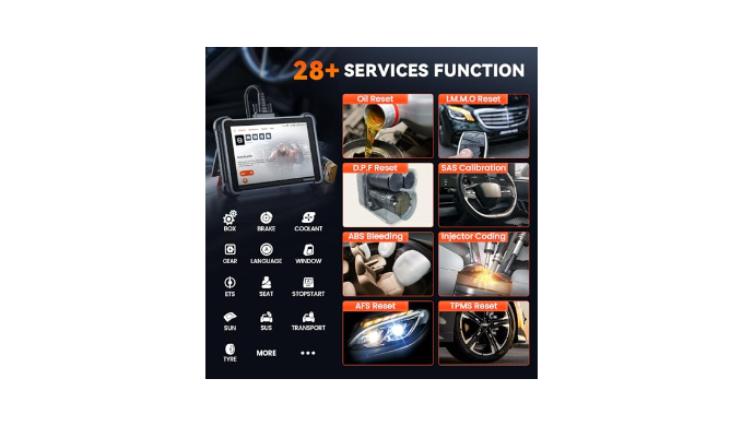 28 Reset services Premier Car Diagnostic Scanner:Specializing in 28 essential reset services, this powerful tool features important reset functions such as Oil Reset, I.M.M.O Reset,D.P.F Reset,SAS Calibration, ABS Bleeding, Injector Coding, AFS Reset, TPMS Reset. Each function is meticulously designed to address specific maintenance needs, ensuring comprehensive care for your vehicle. With intuitive pop-up guidance, the TK672 streamlines complex tasks, making vehicle maintenance more efficient and precise. Keep your vehicle in optimal condition with reliable and advanced reset services provided by the TK672.