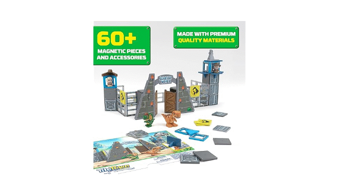 - Get Adventurous: Constructed using safe materials, this toddler magnet tiles set adds a new level of adventure; use the character magnetic tiles to make the Dino climb up on the gate and ride up on the elevator