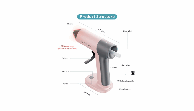 【Cordless Glue Gun Design】The wireless and mini size design makes you more portable and worry-free when gluing items. Save more storage space and use it more freely.
