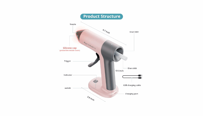【Cordless Glue Gun Design】The wireless and mini size design makes you more portable and worry-free when gluing items. Save more storage space and use it more freely.