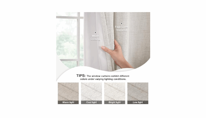BLACKOUT CURTAIN: TIMELES blackout linen curtain panels feature a blackout coating that effectively obstructs sunlight and UV rays. Perfect for improving sleep quality, reducing noise, and enhancing privacy