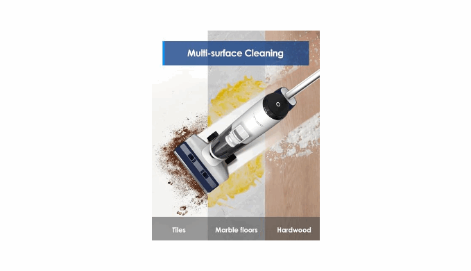 Vacuum and Mop in One Step - Clean up wet or dry messes and easily tackle tough and sticky messes in one step, no need to sweep and then mop like traditional cleaning. Suitable for versatile sealed hard floors including hardwood, tile, marble, laminate.
