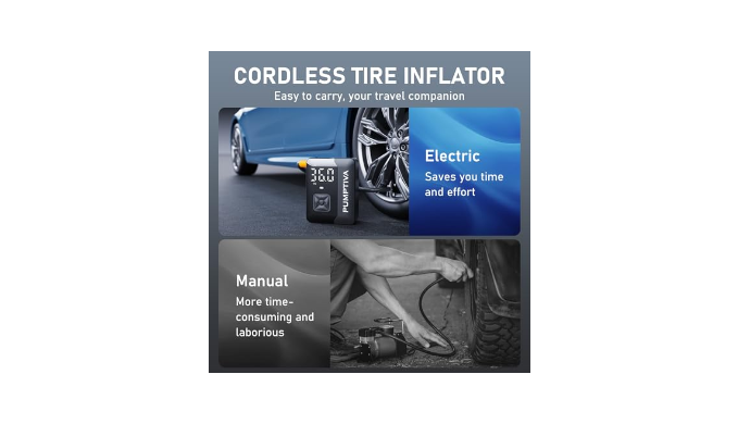 Accurate & Automatic Tire Inflator: This auto electric air pump features a digital pressure gauge that allows you to monitor real-time tire pressure accurately, reducing issues of unstable tire pressure and inflation. The automatic shut-off function stops the pump when the preset pressure is reached, preventing over-inflation and ensuring optimal tire performance and safety.