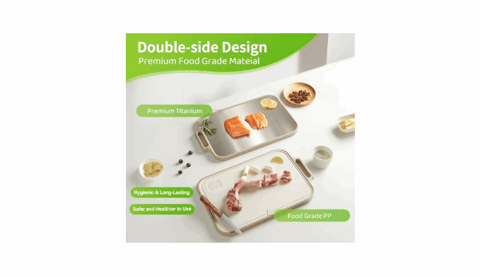 Titanium Cutting Board for Your Kitchen: Unlike traditional boards that may trap food residue and absorb odors, this cutting board features a smooth titanium surface designed to support cleaner, quicker, and more convenient meal prep