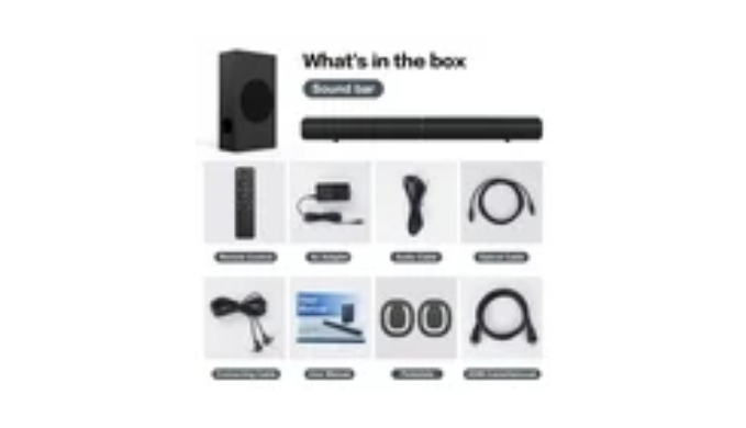 TOPVISION 4.1ch Soundbar with Subwoofer, a premium audio system designed to elevate your entertainment experience. Featuring an external subwoofer for rich bass, a separable design for easy installation, and dual soundbars for extended coverage, this system offers flexibility and convenience. With multiple audio output interfaces including USB, AUX, Coaxial, Optical, HDMI, and Bluetooth, it seamlessly connects to various devices. Boasting a powerful 120W output, three audio modes cater to different preferences, while the included accessories ensure effortless setup. Whether enjoying movies, music, or news, the TOPVISION Soundbar delivers immersive sound quality, making it an ideal addition to any home theater setup.
