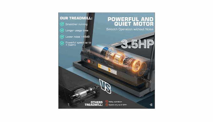 【Strong 3.5HP Motor & Real-Time Heart Rate】The treadmills for home with a powerful 3.5HP motor emitting low noise less than 45dB, without disturbing your downstairs or next doors. 1-12 KM/H(0.6-7.5 MPH) speed helps you meet fitness goals based on your needs, and enjoy the fun of fast running like in the wilderness. The treadmill with handlebar integrated pulse sensors provides real-time heart rate tracking, ensuring you maintain optimal intensity without causing harm to your body