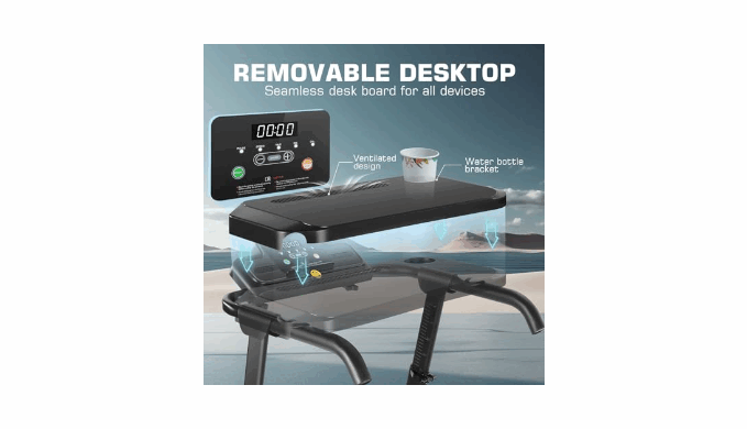 【Adjustable Height & Movable Desk Workstation】The walking pad treadmill has the unique function of adjusting the height from 33.5 to 49.9 inches, suitable for all adults and children. The walking pad has 26.2 \"X 13\" desktop with a cup trough that can place your water cup, laptop, tablet, books, snacks, etc, helping you replenish water and energy in time. You can walk while working, and the treadmill with desktop enables you to solve the problem of having no time to exercise because of work