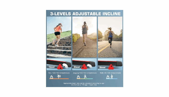 【Dual Shock Absorption & 3 Manual Inclines】Worried about hurting your knees when running? The small treadmill with incline is equipped with 7 layers anti-slip belt, and 6 silicone shock absorbers, which provide strong cushioning for your knees and reduce the risk of injury. Simulate the challenge of running uphill with 3 different manual incline positions and feel the fat burning of your whole body