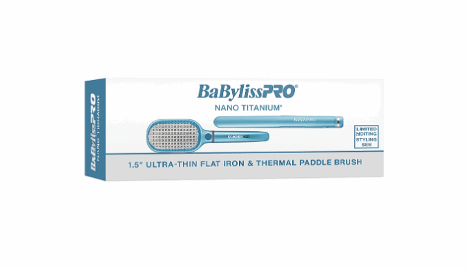 The BaBylissPRO Nano Titanium line of professional tools features a unique combination of the latest and most effective technologies. Ultra-lightweight and durable tools retain and deliver even heat while ionic technology reduces frizz for sleek and shiny results This pre-pack contains two of our best-selling items: The BaBylissPRO Nano Titanium™ 1½ ” Ultra-Thin Flat Iron & BaBylissPR® Nano Titanium™Ionic Thermal Paddle Brush.