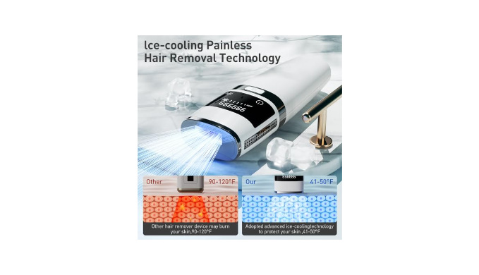 Ice-Cooling System Painless: This laser hair removal system is upgraded with a cooling system, can lower the temperature from 158°F to 50°F at the point of contact with your skin, quickly helps to pre-cool the skin, providing you with a painless hair removal experience.