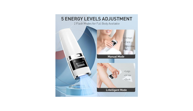 Hair Removal for Women and Men: The hair removal device with auto/manual modes, in auto mode, it flashes automatically when sliding on the skin; When in manual mode, it can be operated precisely on body parts. It\'s a ideal beauty & personal care gift for women and men.