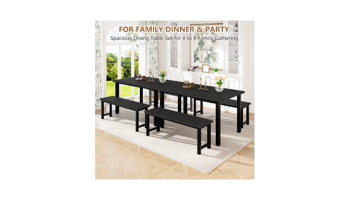 Large Weight Capacity – The farmhouse Dining Table Set offers a large weight capacity to meet your daily needs. The weight capacity of the table is 176 lbs, and each bench is 440 lbs which ensuring your safety.