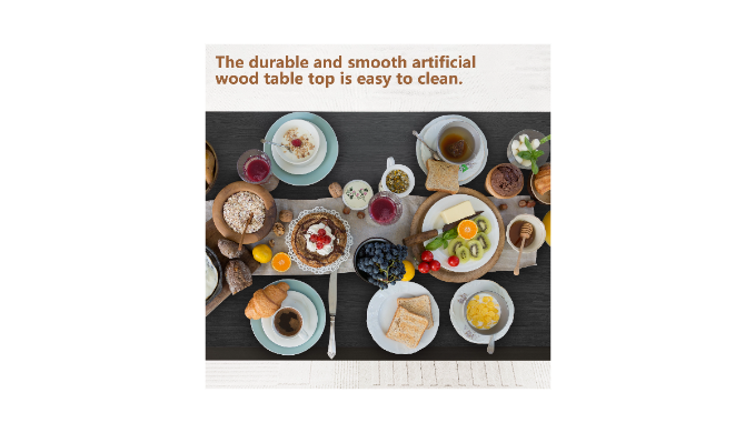Super Sturdy – The tabletop of our Dining Table Set is made of environmental manufactured wood and the legs are made of heavy-duty powder-coated thick steel, which provides the most stability and durability. All parts coated with quality waterproof varnish for wear-resistance, anti-scratch and easy to clean up.