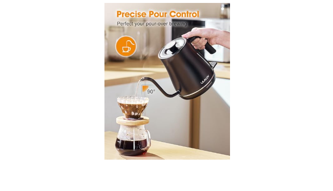 Ergonomic Design with Counterbalanced Handle: The gooseneck kettle features a counterbalanced handle, perfectly designed to provide better control; This balanced grip ensures a smooth, steady pour, giving you comfort for perfect coffee extraction every time