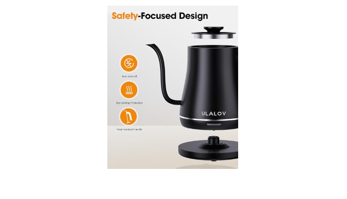 Extra Safe Design: Anti-overheat coupled with auto-shutoff protection keep this pour over kettle from boiling dry; The large, counterbalanced handle always stays cool without scalding your hands