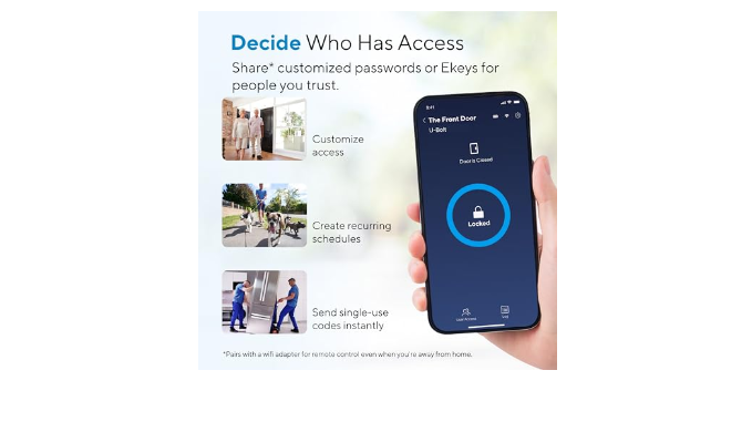 Auto Lock and Auto Unlock: Smart Lock automatically locks on a preset timer and unlocks when you arrive at your door with your smartphone. Utilize the \"ULTRALOQ\" button on your keyboard to \"One Touch Lock\". Low battery alert via app. Add random digits to protect your passcode from prying eyes. With the backlit keypad, entry your home easily even at night.