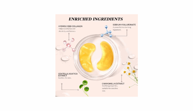 Anti-Aging Power: Infused with Hydrolyzed Collagen, 24K nano gold, Glycerin, and hyaluronic acid, our eye patches help prevent wrinkles, firm and tighten skin, and reduce sagging. Botanical extracts like centella asiatica and licorice root soothe and revitalize for a youthful, radiant look.