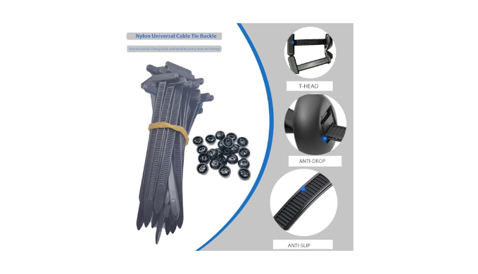 Nylon universal cable tie buckle: Durable UV-Resistant nylon construction, made from high-strength, anti-aging nylon. Withstands rain, heat, wear, and automotive chemicals, ideal for long-term use in demanding environments