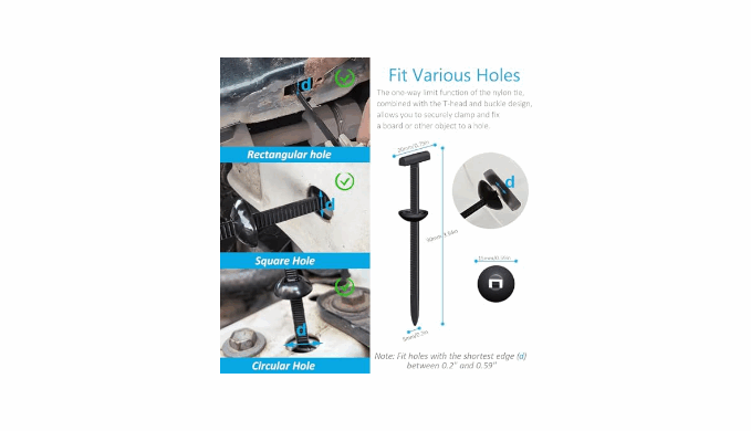 Universal Compatibility – Fits Most Zip Tie Types: Works with standard cable ties, nylon buckle systems, or hybrid cable ties. Includes zip tie clip adapters for panels and push mount bases for drill-free installations