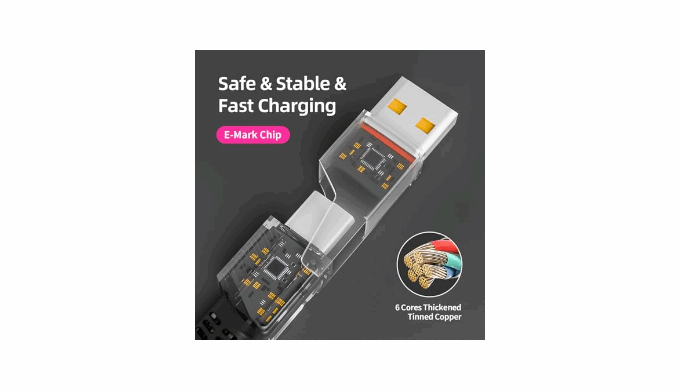240W USB-C Cable Fast Charging : 5-Core thickened tin-plated copper design with E-mark chip, usb c to usb c cable ups to 240W fast charging, usb a to usb c up to 20A 5V, usb c to light-ning up to 27W. (Note: if you want to achieve super fast charging, pls use a 60W above USB C power adapter)