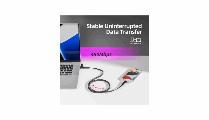 Support Carplay & Android Auto : This dual head type c 4-in-1 multi charging cable can work with carplay and Android Auto, allowing you to charge and navigate simultaneously. All Port Support Data Transfer, and the data sync speeds up to 480Mbps.Transfer a 1G file in just 30 seconds (Video/media output not supported).
