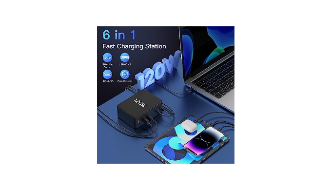WHAT YOU GET & SERVICE - 1*120W USB C desktop charger (6-port fast charging station), 1*User\'s manual, 1.2 meter detachable power cord, a thoughtful anti-slip mat, 24-month warranty from us and friendly customer service. If you have any problem, you can contact us through Amazon and we will solve the problem within 24 hours.